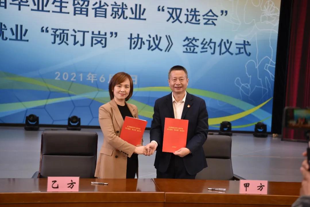 会上签署了《国产一区二区日本在线学生就业“预订岗”协议》,创新开展预定毕业生工作,促进大学生留省就业。苗立海、曹小溪及我校领导共同为部分就业基地授牌。