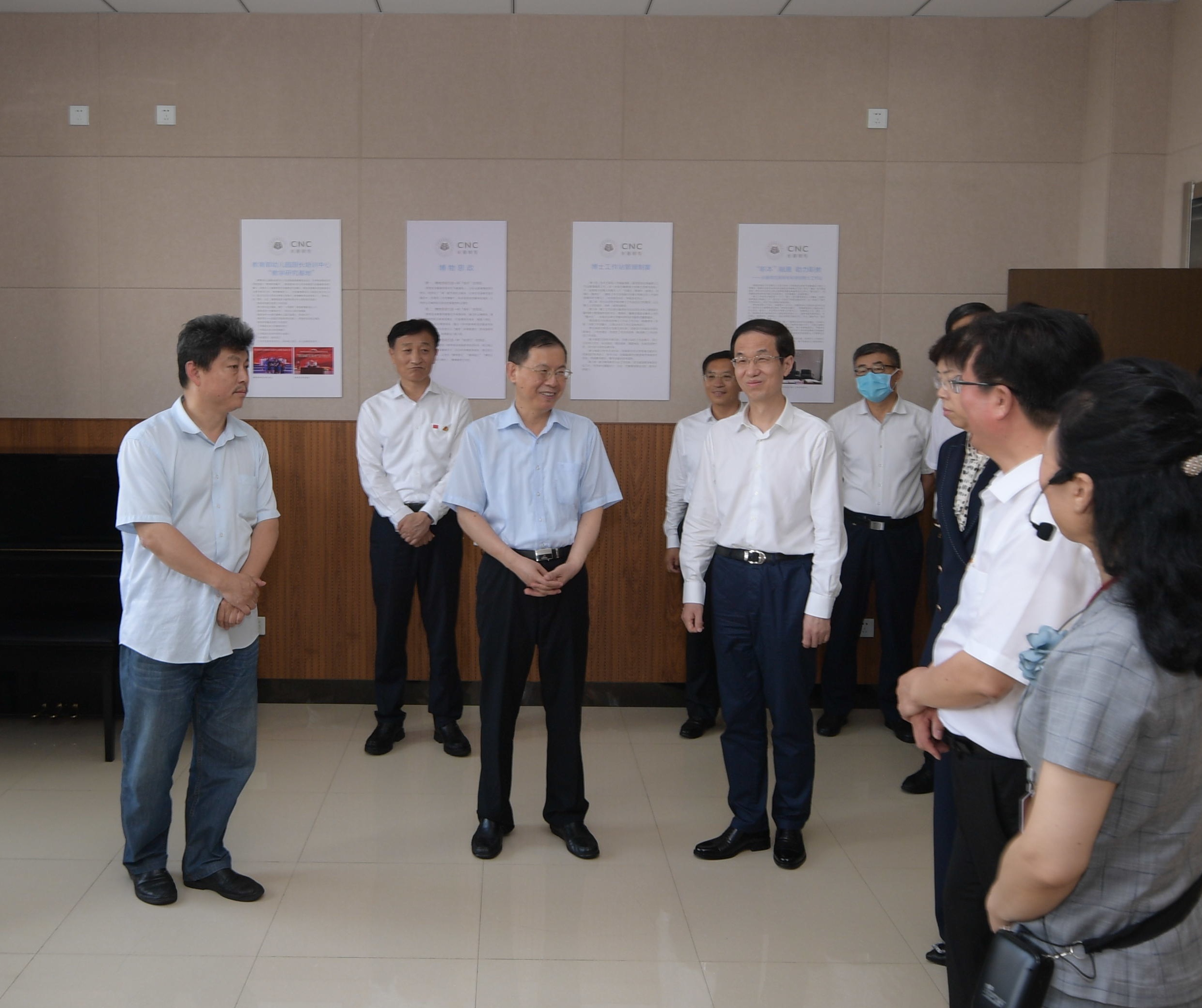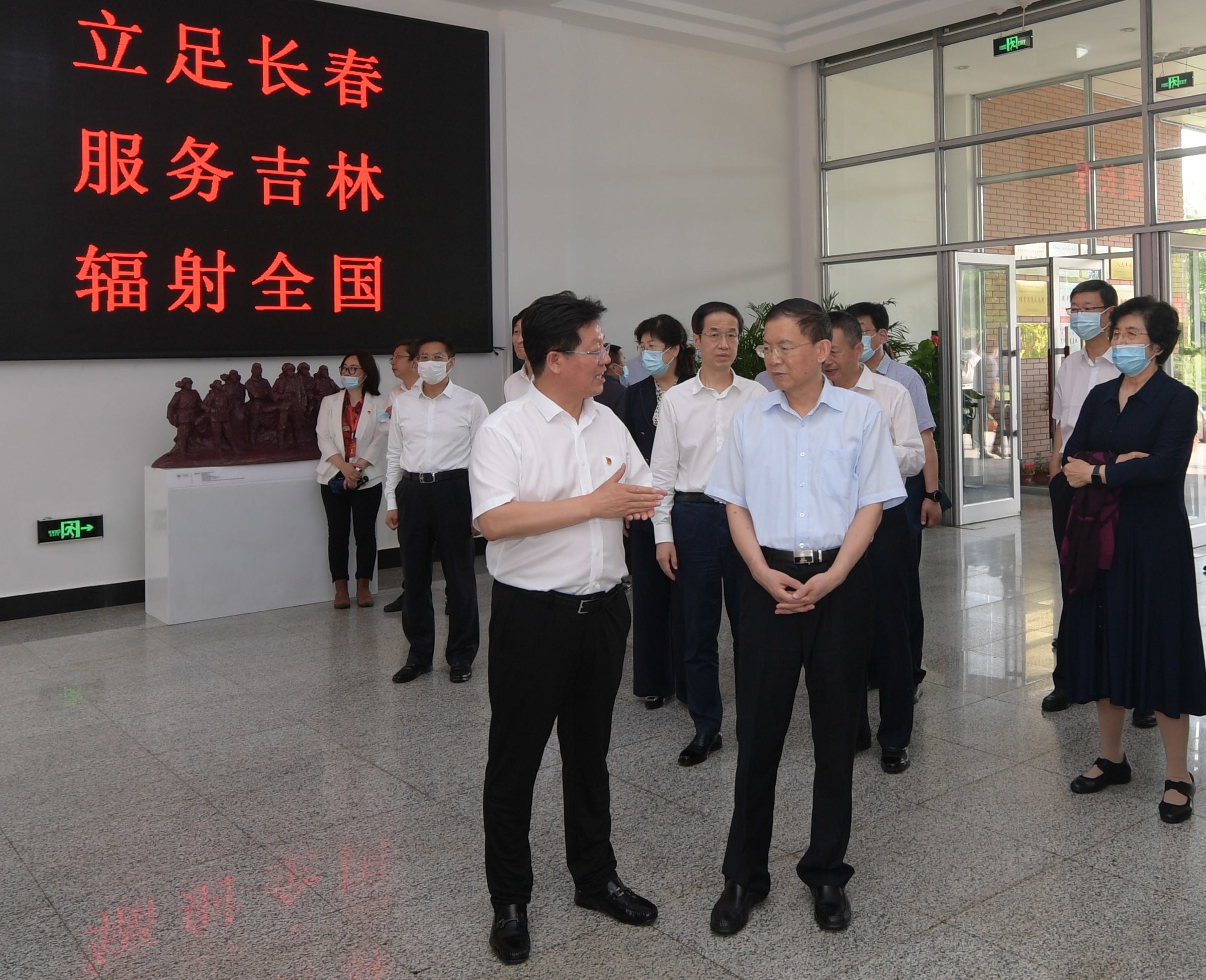 7月7日下午,在全国上下学习习近平总书记在庆祝中国共产党成立100周年大会上的重要讲话之际,全国人大常委会副委员长、民建中央主席、中华职业教育社理事长、中央社会主义学院院长郝明金到校视察指导工作。中华职业教育社党组书记、总干事方乃纯、教育部职业与成人教育司副司长谢俐、教育部职业技术教育中心研究所所长王扬南、吉林省委副书记、省委教育工作领导小组组长高广滨、省委常委、统战部部长李悦、省人大常委会副主任、民建吉林省委主委贾晓东、省人大常委会原副主任、省中华职业教育社主任车秀兰、省教育厅一级巡视员、副厅长战高峰、长春市委副书记、市委教育工作领导小组组长徐晗、长春市委教育工委书记、市教育局党组书记、局长黄宪昱、长春市教育局副局长李大伟,长春市政府教育督导室专职督学胡培柱等领导陪同调研。