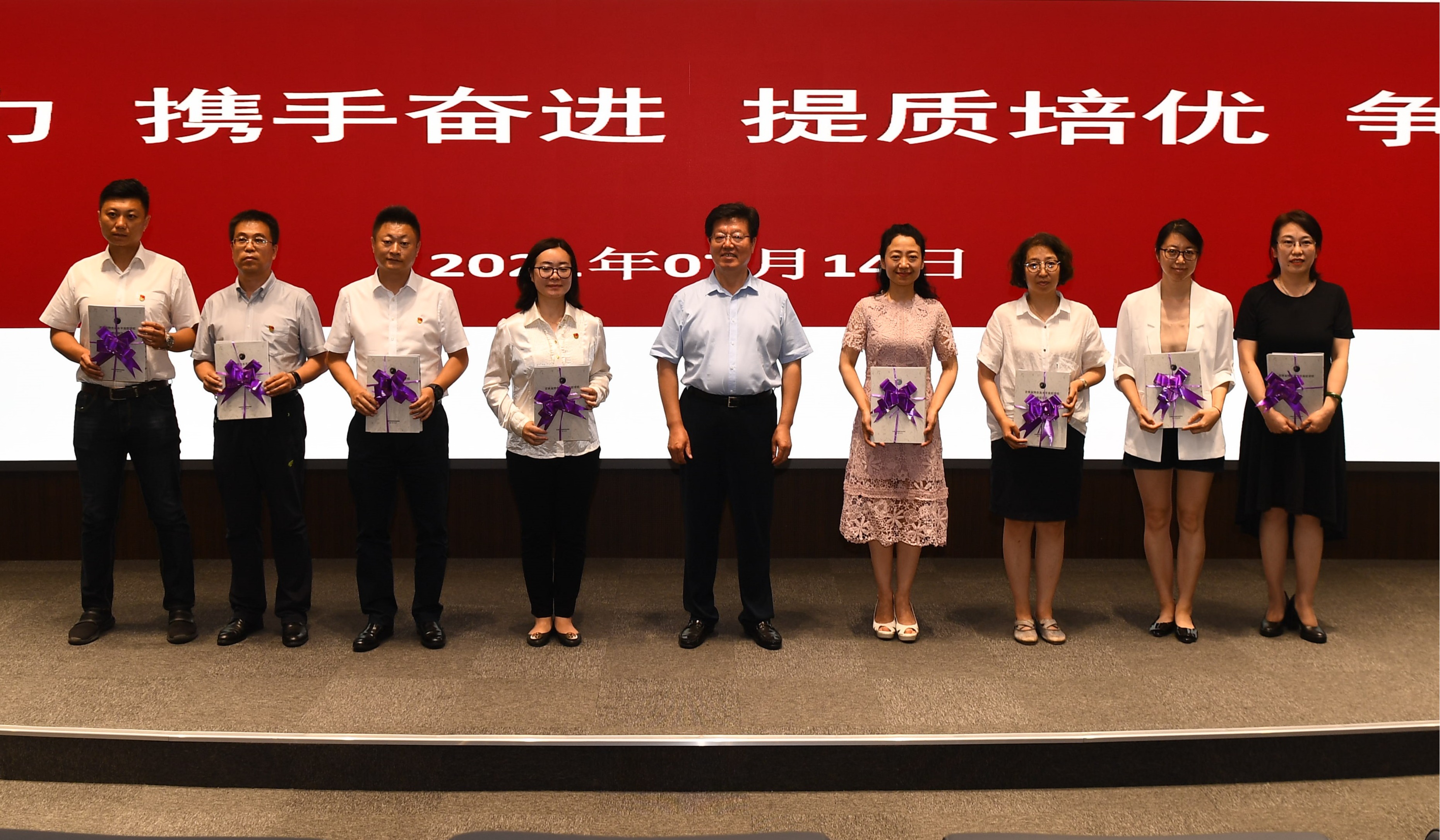 7月14日,在中国职业教育博物馆9楼演播厅,我校召开“双高”建设第五次推进会。出席会议的有学校党委书记崔国涛,党委副书记、校长姜国权,党委委员、纪委书记张建村,党委委员、副校长史书华,党委委员、副校长刘海涛以及部分中层干部、项目负责人、教学秘书、教研室主任(组长)。