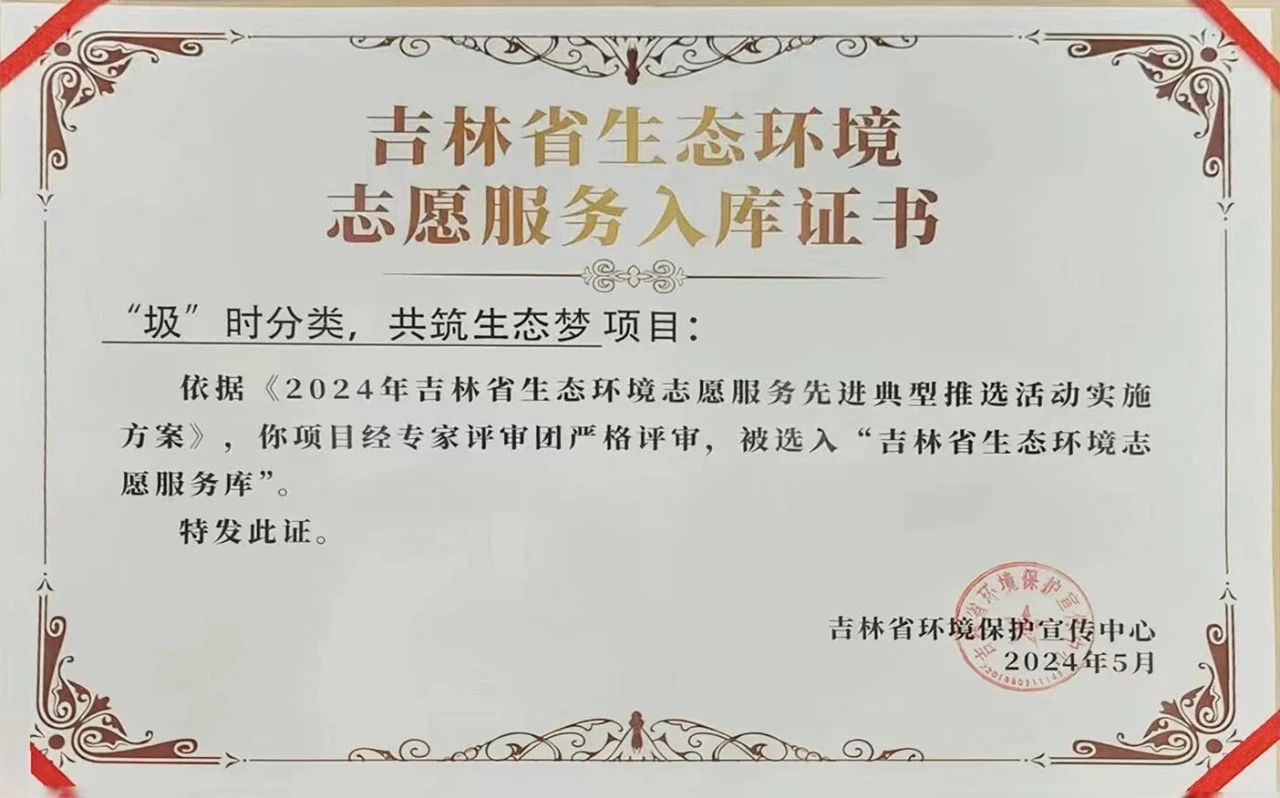 为有效提升生态环境志愿服务的品牌效应、影响力和吸引力,引导动员更多学生参与生态环境保护事业,近日,我校参加由吉林省生态环境厅、吉林省委社会工作部主办,吉林省环境保护宣传中心、吉林省志愿服务联合会、吉林省生态文化协会、吉林省生态环保志愿者协会、搜狐吉林融媒体中心承办的2024年吉林省生态环境志愿服务先进典型推选活动。其中,我校《“圾”时分类 共筑生态梦》垃圾分类志愿服务项目,经过专家评审团严格评审,入选“吉林省生态环境志愿服务库”。