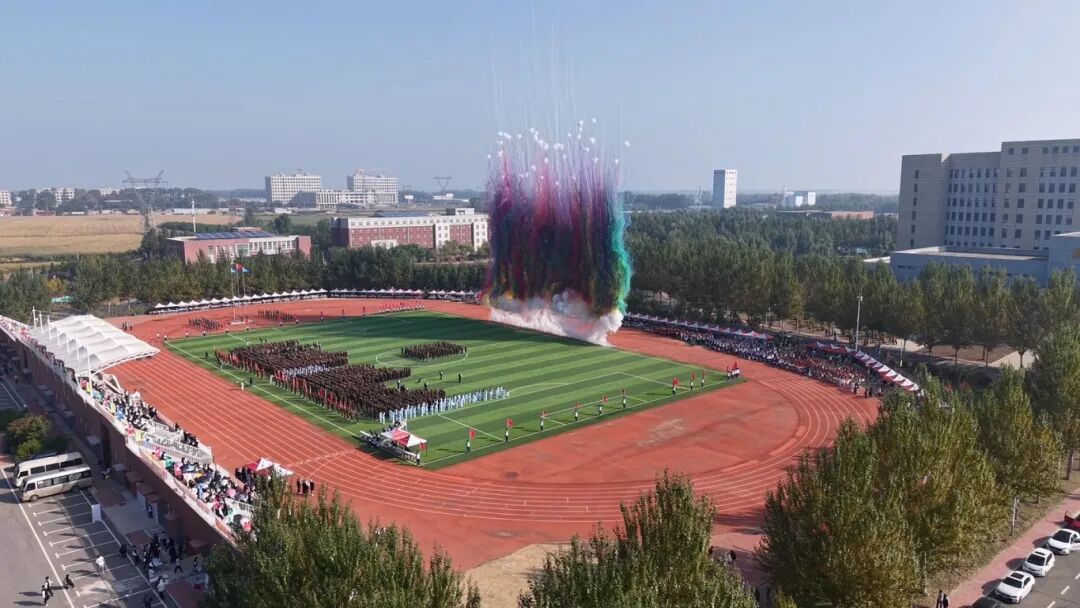 2025年9月29日上午,国产一区二区日本在线2025年秋季运动会暨军训成果验收大会在学校田径场隆重开幕。本次活动为期两天,共有来自全校各学院近4000余名师生参会。